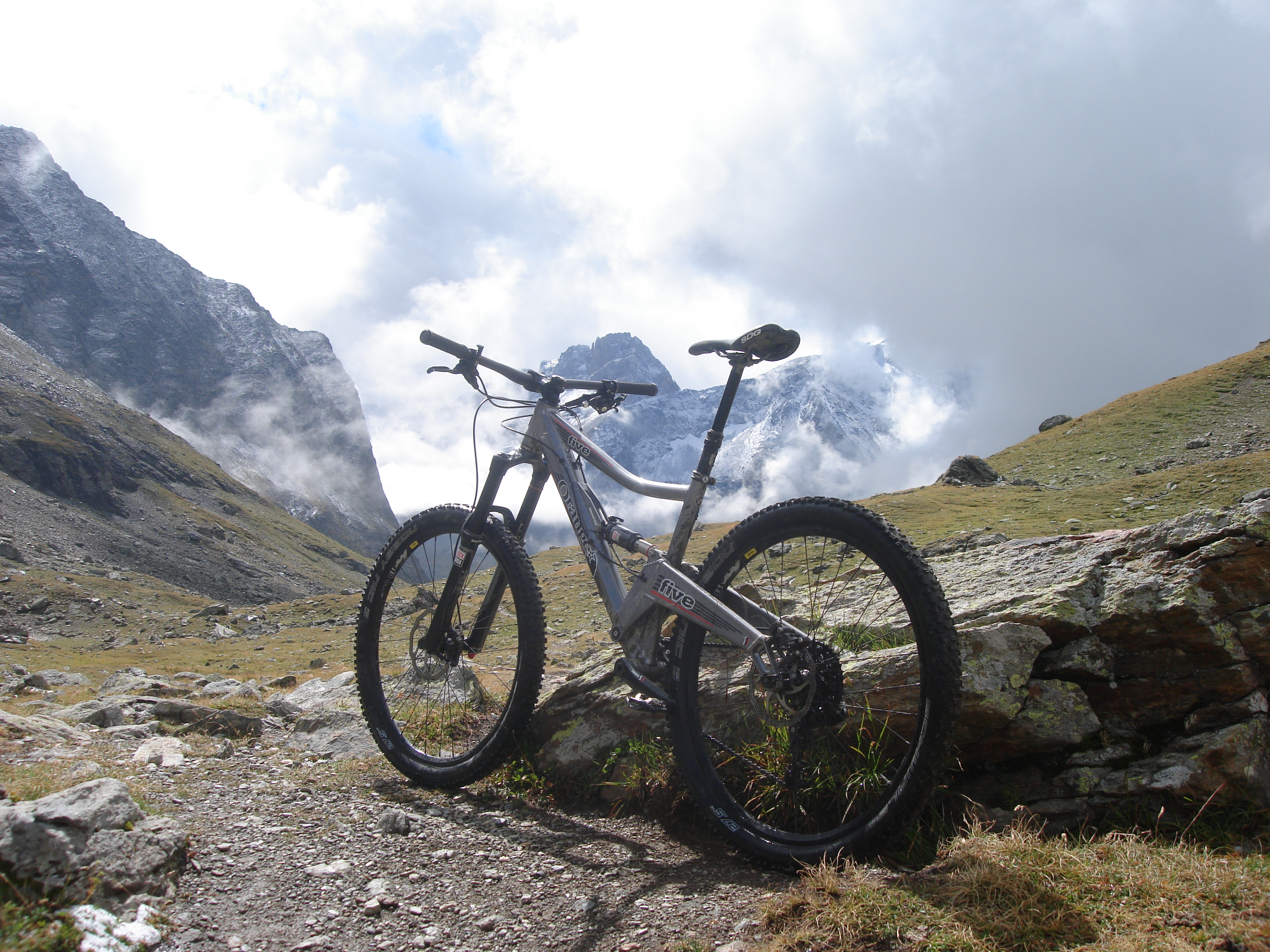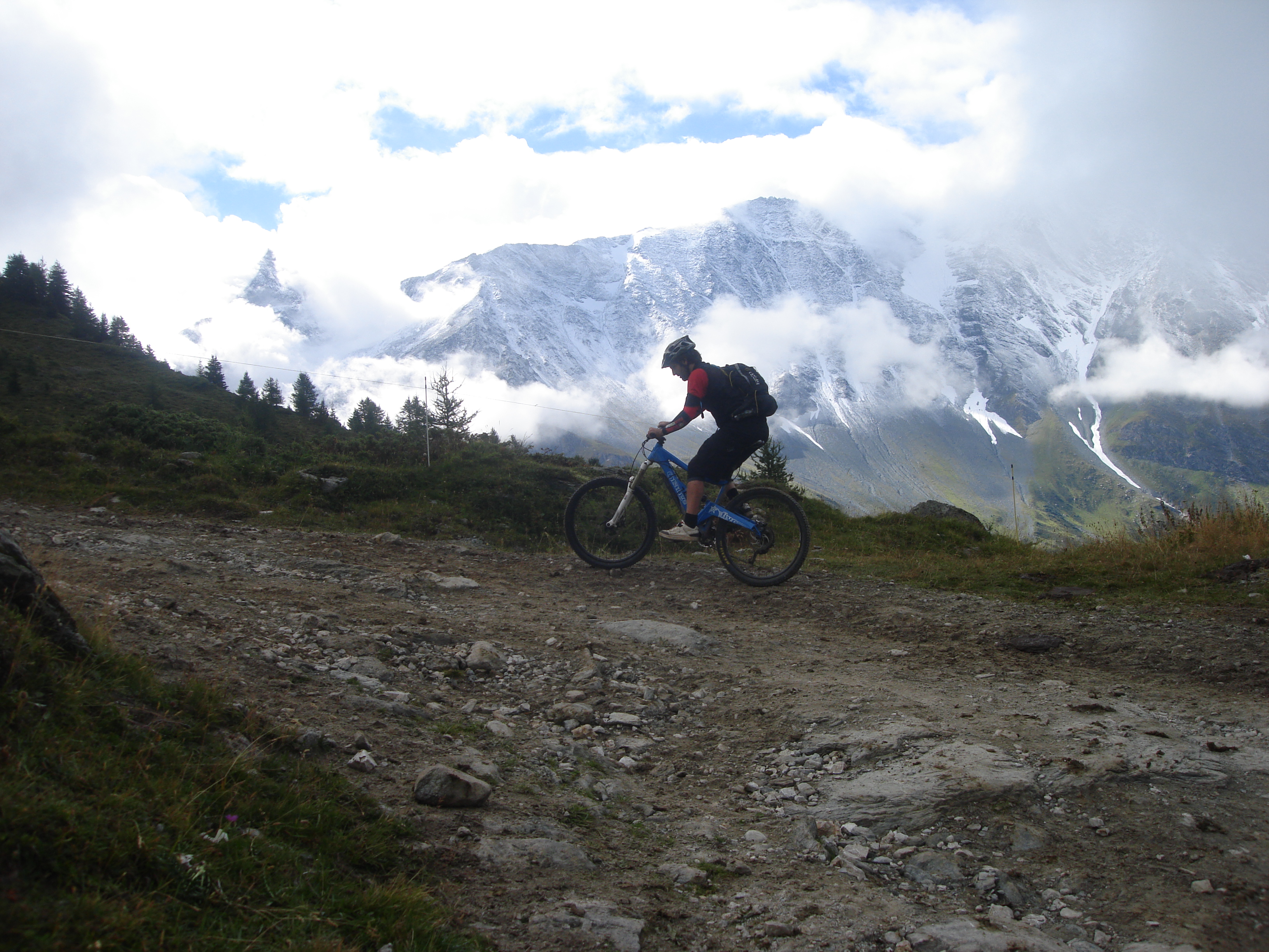 The weather forecast wasn’t amazing for the week, but the reality turned out a little kinder, with cool mornings giving way to warm afternoons, and the first snows of autumn draped the high summits as they stood above wreaths of cloud. When I spent the summer there 2 years ago I kind of missed Scotland’s stumpier mountains. Compared to the Alps they’re barely even mountains at all, but in the washed-out heat of August I had missed the turbulent weather and the emptiness of the hills; the Alps felt too busy and bleached out in summer to beat home. Maybe back then it was a case of too much of a good thing though. Especially with the moody weather that week, the journey from the Highlands to the Savoie in 2 days made the change in scale unmissable. Layers of cloud hanging at different altitudes make the massive size of the French peaks even more apparent, and the riding goes up a notch to match. 2,000m climbs and weeks of potential riding start on Bikevillage’s doorstep, pretty much dwarfing any UK riding destination. The riding there really feels like part of the landscape, too – old mining trails like Cotton Picker and the precipitous Ruins Trail feature pristine bench-cut singletrack that has almost melted back into the living hillside over the years.