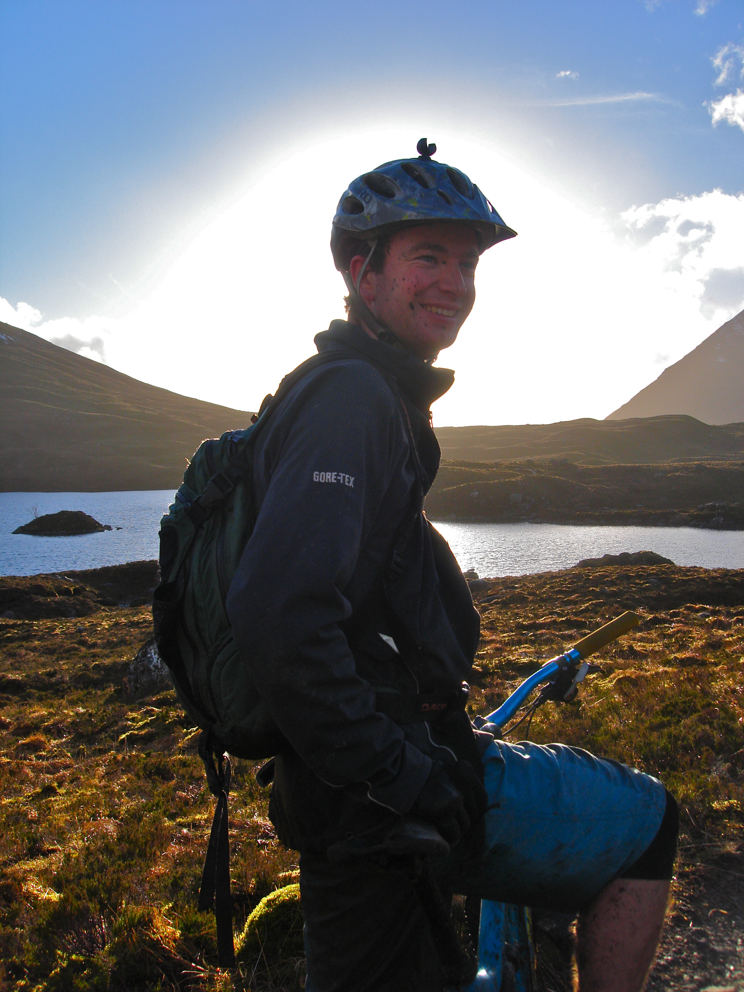 We wanted to trust the forecast, but as we followed the road away from settlement a crisis of faith began to set in. There’s riding in the rain, and then there’s riding in the rain at 2 degrees in February, knowing that your route will take over 6 hours and will involve carrying up to 700m altitude. As we descended the glen into Kinlochewe though, there was a hint of early sunshine through the mist, unmistakeable and welcome. The last of the rain cleared to the East while we sat in the van at Annat, one last brew for the road and bags packed with winter extras.