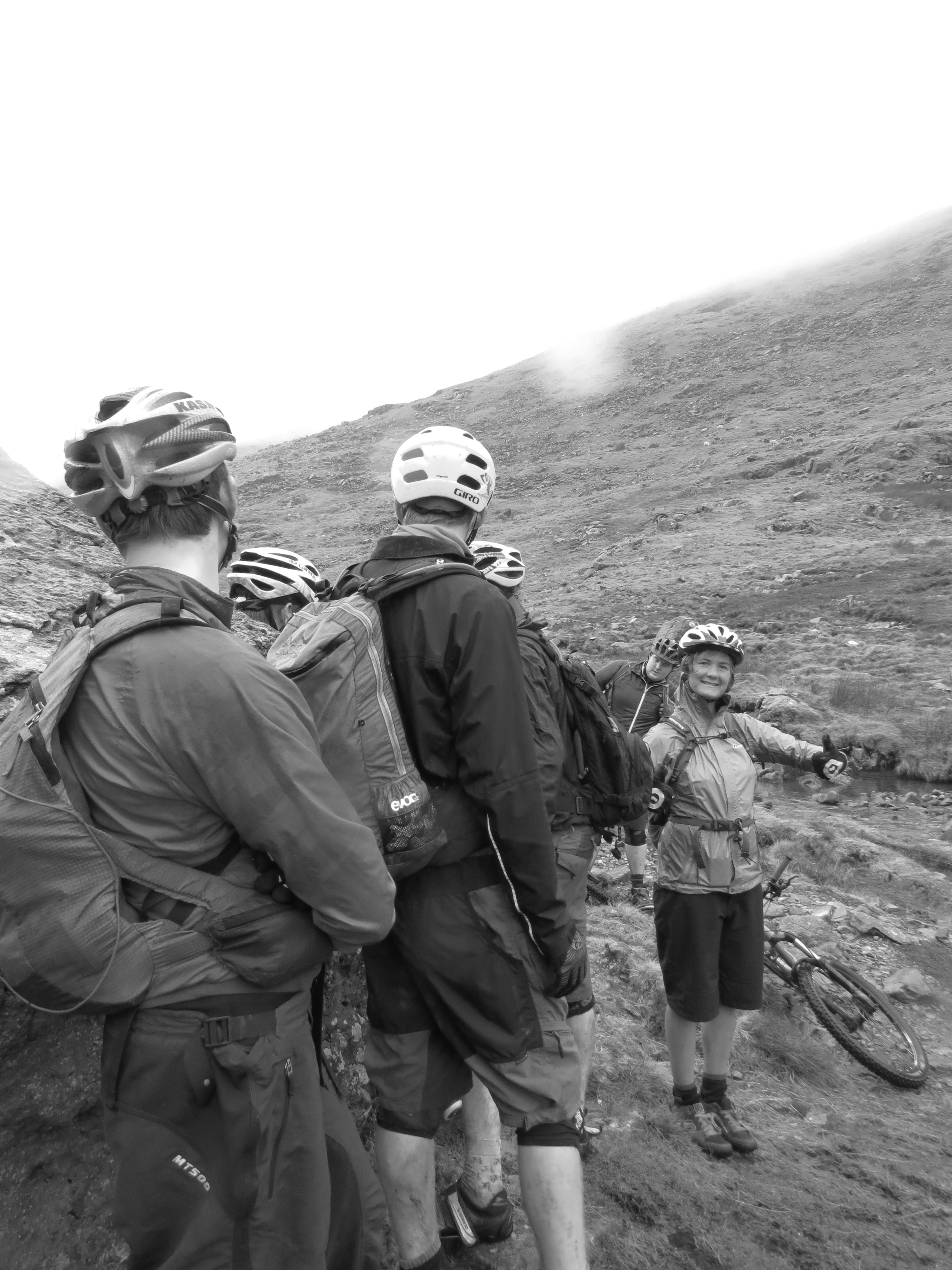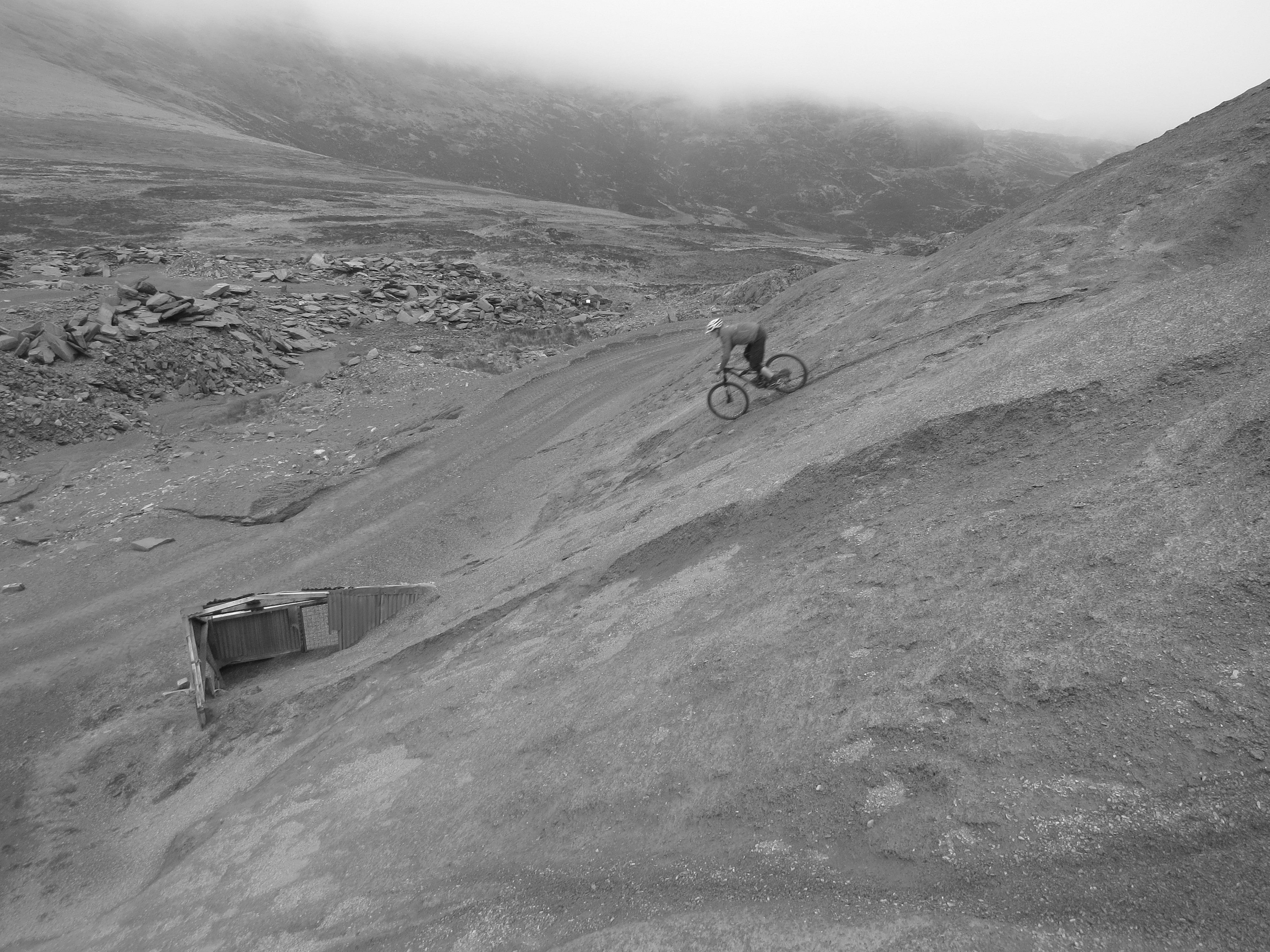 I’ve wanted to do the classic ‘Four Passes’ route for a few years, but the scarcity of opportunites to make the drive and fickle weather have always stopped me so far. With the day before having turned out beautifully, we decided to ignore MWIS’s warnings again and head out. We drove up to Honister slate mine, where we waved goodbye for now o some of the others, as we were due to meet them later en route. Wharnscale’s pretty good really isn’t it? I get what all the fuss is about now. After the festi-tech we wasted little time on the short carry up to Scarth Gap, where we met both the others and the impending rain at the same time. Clothes got soggy and the rocks got greasy as we moved together over Black Sail, but moral was kept warm and dry by a tactical chip diversion to Wasdale Head Inn. The hillwalkers all seemed to have gone home as we set out again towards Styhead Pass with cloud and darkness gathering. A lone figure could be seen above us, probably heading to the rock feature of Nape’s Needle but eventually disappearing into the mist. After hours of hike-a-bike and technical descending legs threatened to mutiny, but tasty treats were on hand to be summoned from the depths of the backpacks where they had been forgotten months ago, and a final slippery descent welcomed us (sometimes a little sideways) back to the River Derwent and Seatoller. As a ride it was worth the long wait – but is four the magic number of passes, or is there an extension out there to make an even more mythical summer’s day of it?