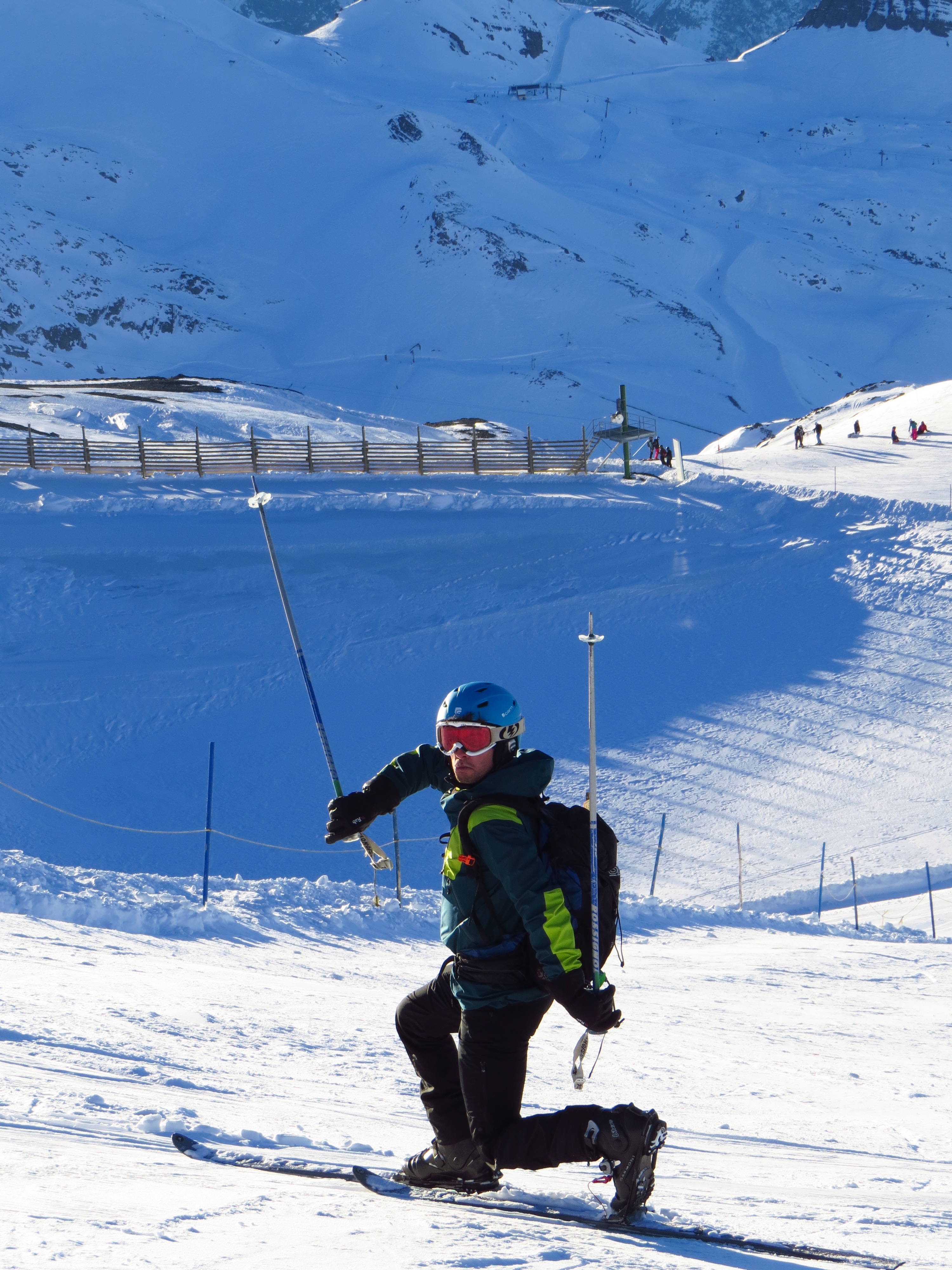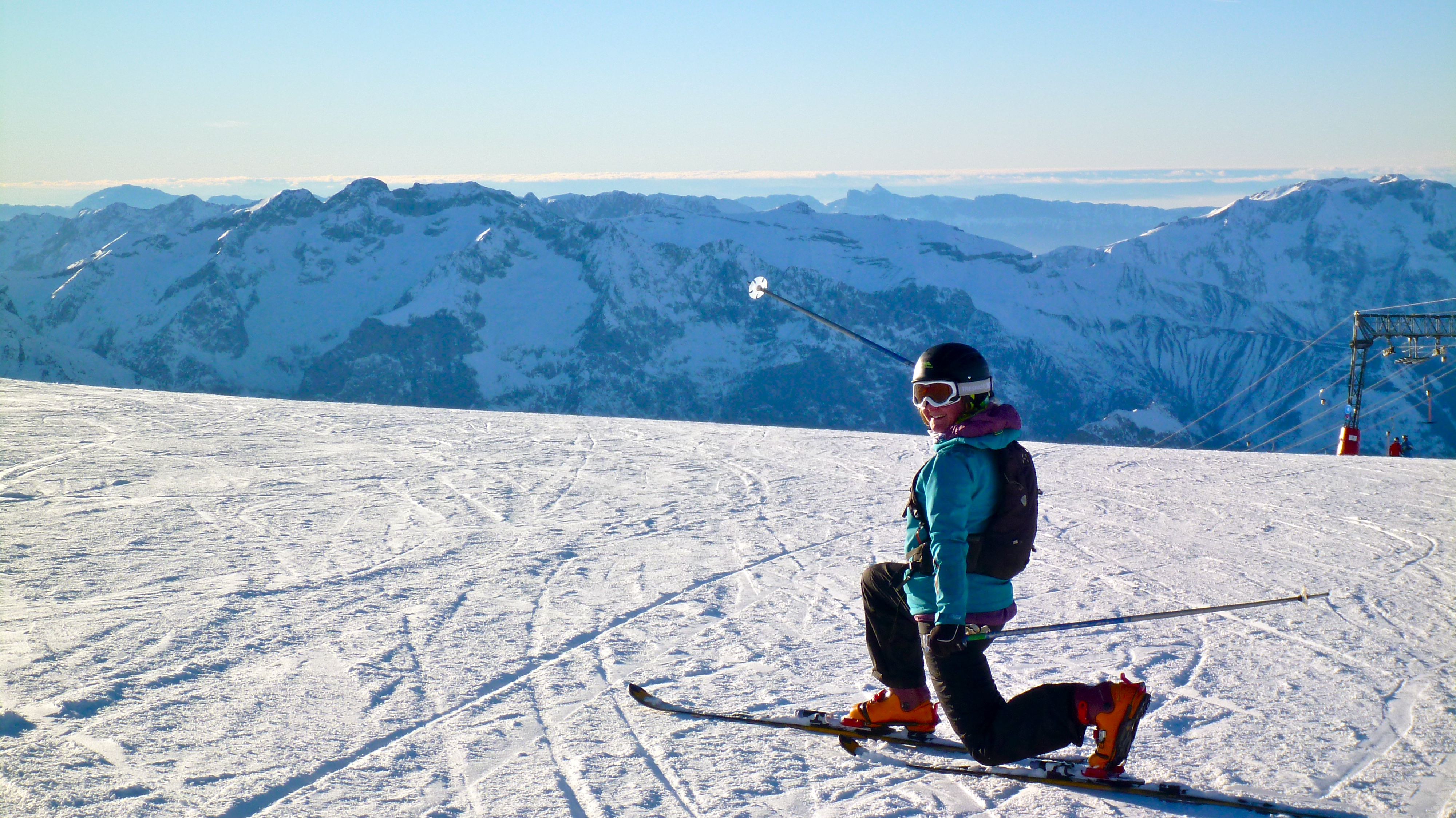 A wise man said that, and it turned out to be true. Tnankfully, we were finding that under a January sun in the Alps, rather than the gales and hill fog of the Cairngorms this winter. Many hours of lunging, leaning and occasionally tangling meant a good night’s sleep every night, and plenty of funny looks from everyone else in Les Deux Alpes as they skied gracefully past us.