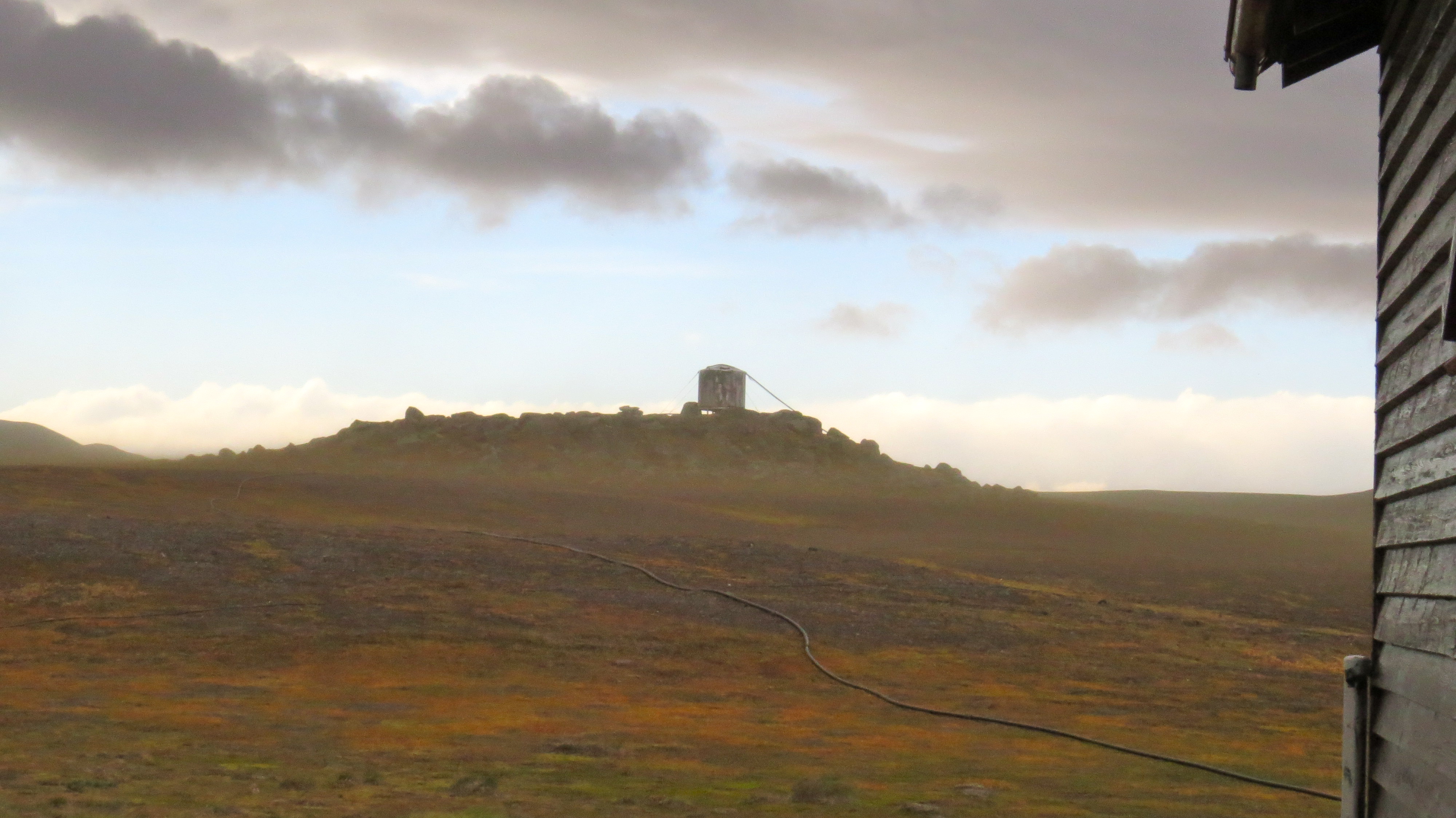 We went to bed for the second night at Nyidalur hut expecting the next day to be a windy one – come morning, I can’t say we were disappointed. One of the main poles of the tent had been bent, and we had a struggle collapsing it without it going airborne. The wind was gusting above 60 miles per hour, and continued to rise as we ate breakfast indoors. Our worries felt justified when Inga positively forbade us to ride anyway that day. Not that we would have gotten anywhere anyway, as the wind was blowing from the southwest, against our direction of travel. All morning the wind rose, moaning in the chimney and the windowpanes, and seemingly trying to wrench the hut apart, one plank at a time. The violence of the storm made our little outpost a desert island among grey waves – it wasn’t safe to drive and so everyone else was as stuck as we were. The busload of elderly tourists seemed to be having a great time, and to be honest we were enjoying the enforced day indoors given that the only cost was occasionally making sure one of the older guests didn’t get blown away on trips to the outdoor toilet. By early afternoon the wind had peaked, we guessed at roughly 90 mph but weren’t sure – the amount of dust blown into the air had dimmed the sun, and the small river beside the hut was mostly airborne and travelling uphill. I learned how to play solitaire, started to love it, and got over it in the space of a morning, but there was a strange enjoyment in simply watching the wind punish the land with an invisible hand; even a sense of camaraderie between inmates in the hut, as we swapped stories and encountered general amazement at our inefficient mode of travel. There were a couple of events to make the day a little more interesting, the first of which was the arrival of a pair of German tourists in a rented Suzuki Jimny. They seemed to have no idea of where they were, why the weather might not have made driving that wise (Jimny’s are not renowned for their off-road ability), and didn’t comprehend that there weren’t any spare beds in the small hut. They absolutely maddened Inga, who seemed to have had quite enough of being cooped up with her enforced collection of bemused and idiotic captives. Still, the Germans were talkative enough, and Inga thawed out enough to share some chocolate cake that she had been saving with us. A friendly atmosphere prevailed. The best part of the day, though, was watching two fatbike riders, travelling south-north, get blown past the hut at mach chicken having obviously elected to crack on and make the most of a meteoric tailwind. They barely made it across the river beside the hut without getting forcibly dunked by the strength of the wind, and we soothed our jealousy by muttering that it was a silly and dangerous thing to do. Inga was furious that anyone would be so stupid, and perhaps had a point. It was hard to picture being able to control a bike in the wild gusts, even if you were travelling with them, and the pair had almost no kit besides a tiny rucksack each. We were approximately 100km from the nearest houses in either direction, and it would be a lonely, wild day to have a mishap. Inga hoped that they would run in to the rescue team stationed down the road and be talked into sense.