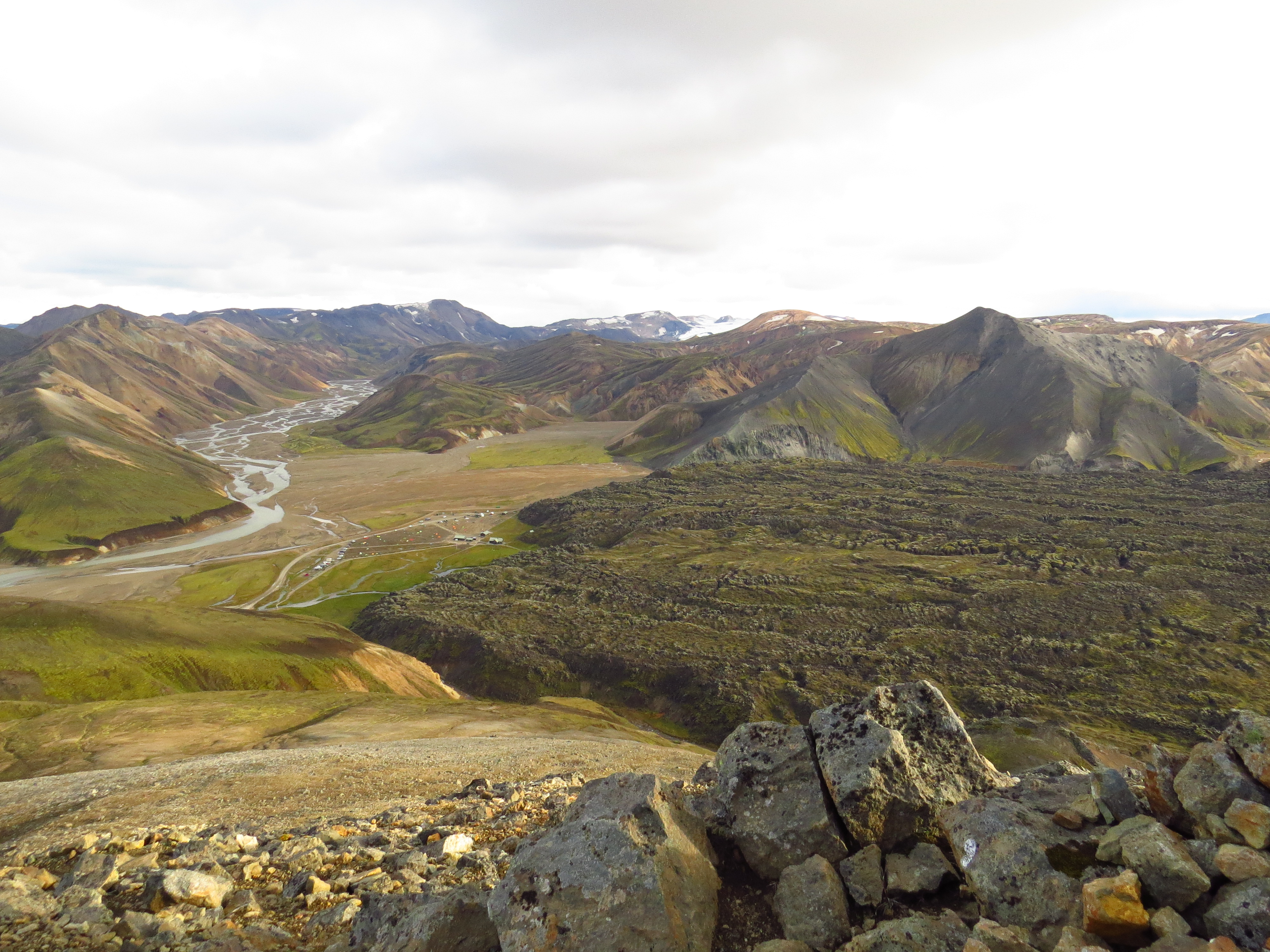 The Laugahraun lava field, with the campsite beneath it on the left.