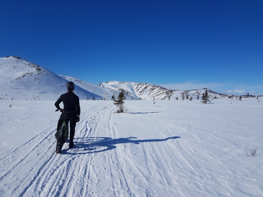 The race itself was as warm as predicted, but with solid snow conditions and an air of expectation that this was going to be a fast year. Seeing the heavy, 4.6” tyre equipped ‘Bismarck’ that I had brought , had even offered to loan me her Fatback Corvus for the race. Despite already feeling as though they had done too much for me, I didn’t want to look a (very light) gifthorse in the mouth, and as we hit the first rolling singletrack miles along a low ridgeline, I was very glad that I’d accepted the offer. Despite that, there seemed to be riders passing me alarmingly regularly. I knew from the few months of training that I’d had through Kurt Refsnider at UltraMTB that flat pedally miles were never going to be my thing, but it took a lot of resolve to keep chugging away at my own pace and hope that all these people had misjudged the distance.