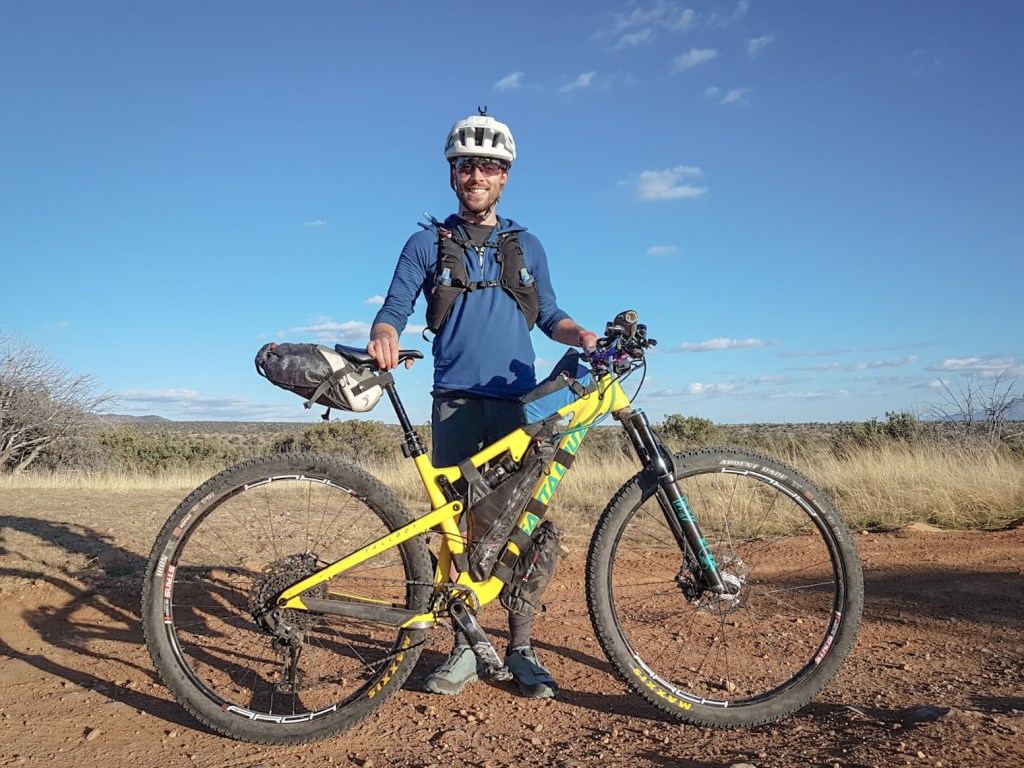 The other issue was food. Resupplies on the AZT300 aren’t exactly plentiful, and I was hoping for a schedule that could have me missing the critical halfway resupply at Summerhaven while the small store was still shut… After that there is nothing on route to Picketpost, 140 miles away. To play it safe, I packed the 16,000 calories I estimated that I needed on to my bike and back, along with the 4.5 litre water capacity that would be my maximum. I might not have taken much gear, but the food and water added up to a heavy bike as we camped down at Parker Canyon Lake one Wednesday night in April, anxious and excited for the start early the next morning…