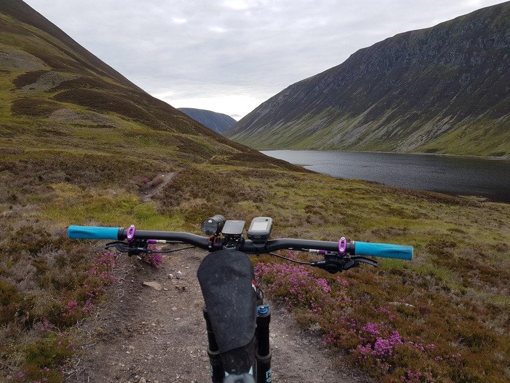 The sting in the tail is just that! A steep, steep push up and away from the river takes the rider into complicated, remote topography just when Blair Atholl seems within reach down the Tilt… But it’s dramatic, and saves some brilliant riding for the end. The Hobnobs kept me going up the long climb past Fealar Lodge, into the gathering gloom and the first spatters of rain from a warm front which had been approaching all afternoon. Luckily it stayed mild and the rain was light, so I got the lights on and tried to use energy efficiently on the second climb from Daldhu towards Coire Lagain on the grassy singletrack. In the dark and with the increasing rain, it was quite a sporty bit of singletrack on which to keep speed! Soon enough, I was dropping like a stone down the road towards Blair Atholl, and I pulled up at the train station a little before midnight, with 18 hours and 30 minutes elapsed on my Garmin.