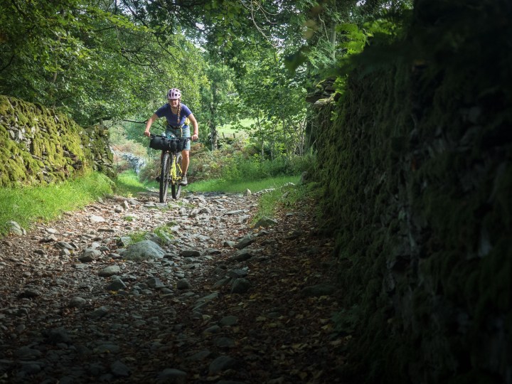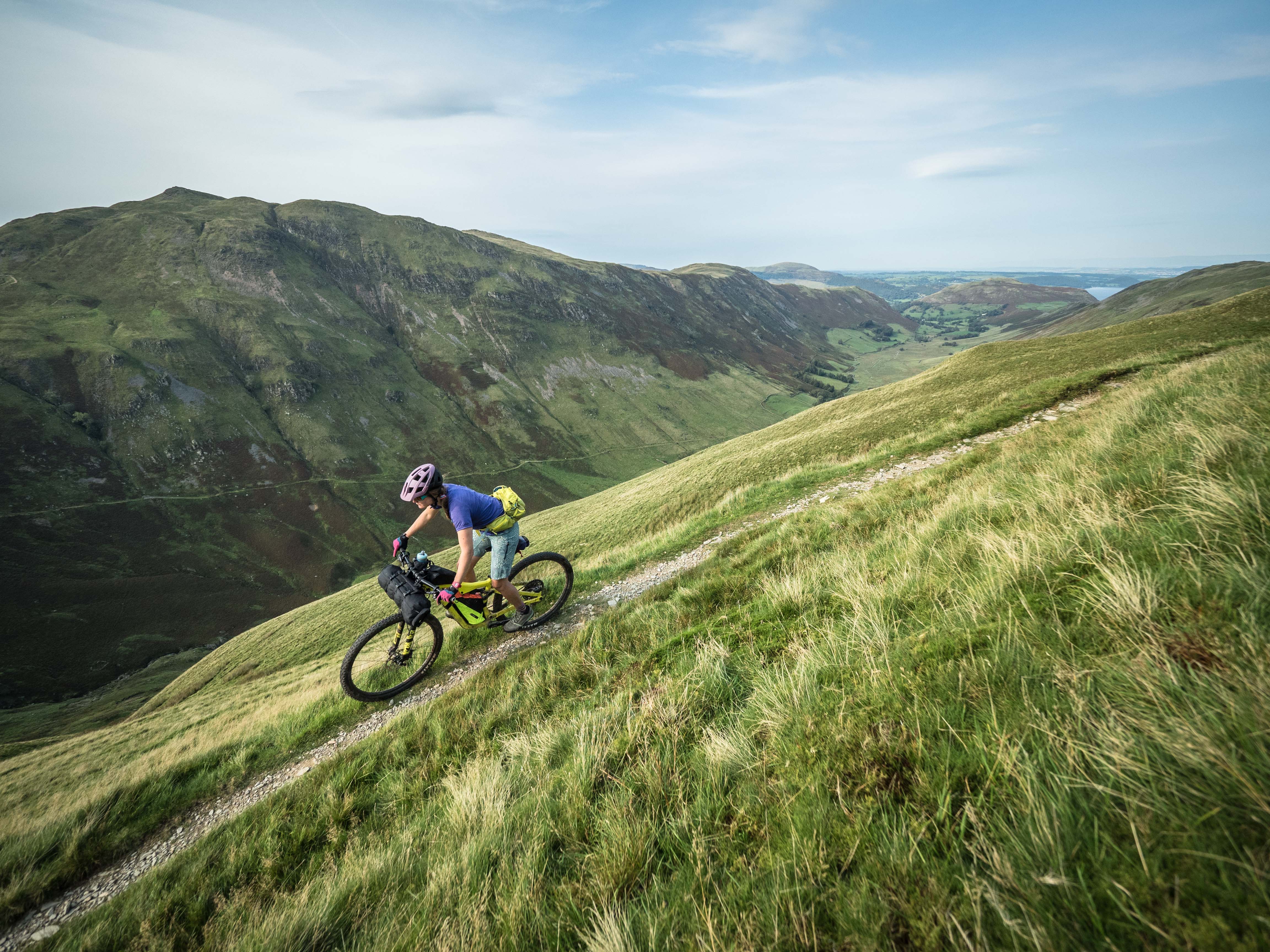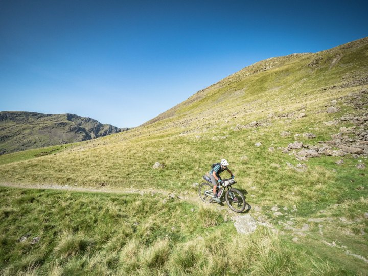 The western section of the route takes you through the most mountainous-feeling valleys of the Lakes: Eskdale, Wasdale and Dunnderdale, before climbing Honister and traversing Borrowdale on classic singletrack back to Keswick. The evocative names are unmistakable, and the valleys have a West Highland feel to them. the passes linking them give super technical riding that made us equally glad for full-suspension bikes and the lightest gear we could pack. the sun shone all day, giving it an alpine feel at times, although Black Sail really rides better going south, and Gatescarth is a real test on a loaded bike with seat bag as you drop toward Buttermere.