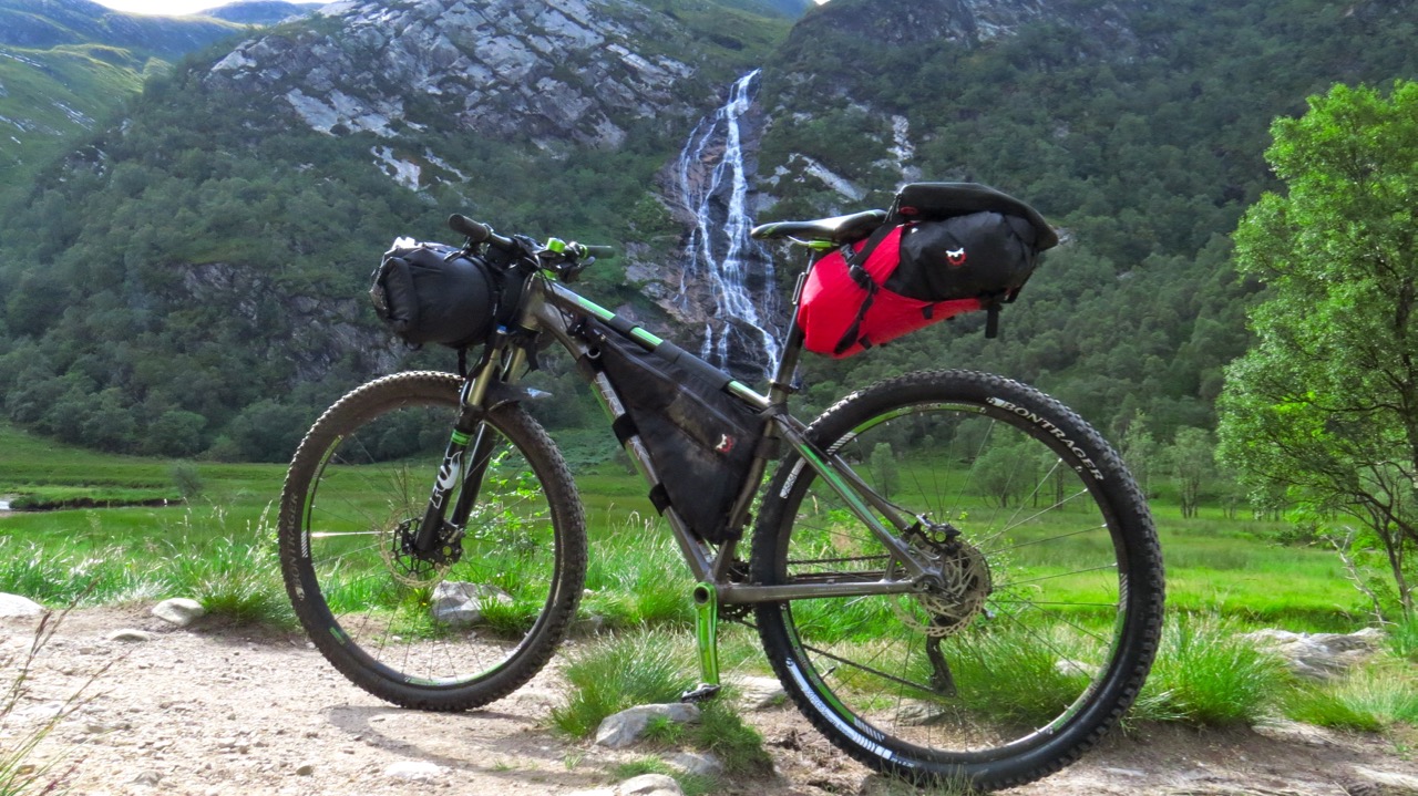 Bikepacking for me started with a loop of the Cairngorms on a hot, sunny weekend in 2013. I used a couple of harnesses borrowed from Annie to attach oversized, dumpy drybags to the bars and seat of an Orange Elite 26” hardtail, and faded into the moors. A couple of days later I emerged, slavering a little and desperate for a shower, but also permanently attached to the idea of carrying camping stuff on my bike rather than my back, and riding to places too far away to sleep in your own bed at the end of the day.
